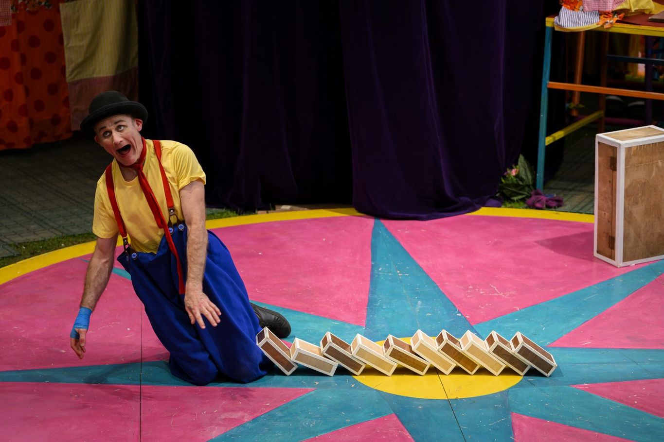 This is a mini circus. Essentially 3 people, Tweedy the clown, Charlie Bicknell as Lady Crinklebottom, and sidekick Sam Goodburn. All three ably assisted by a couple of stage managers and sound guy, all of whom occasionally take centre stage as well. But it’s definitely quality and not quantity, as what this small cast manages to produce in the Big Top is plenty of laughs, with a few thrills thrown in with the chaos and slapstick.