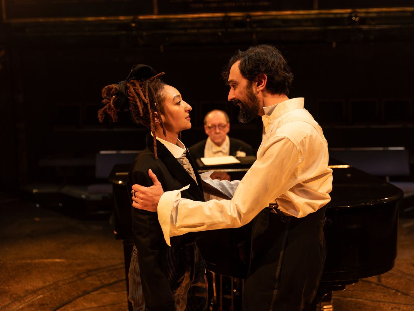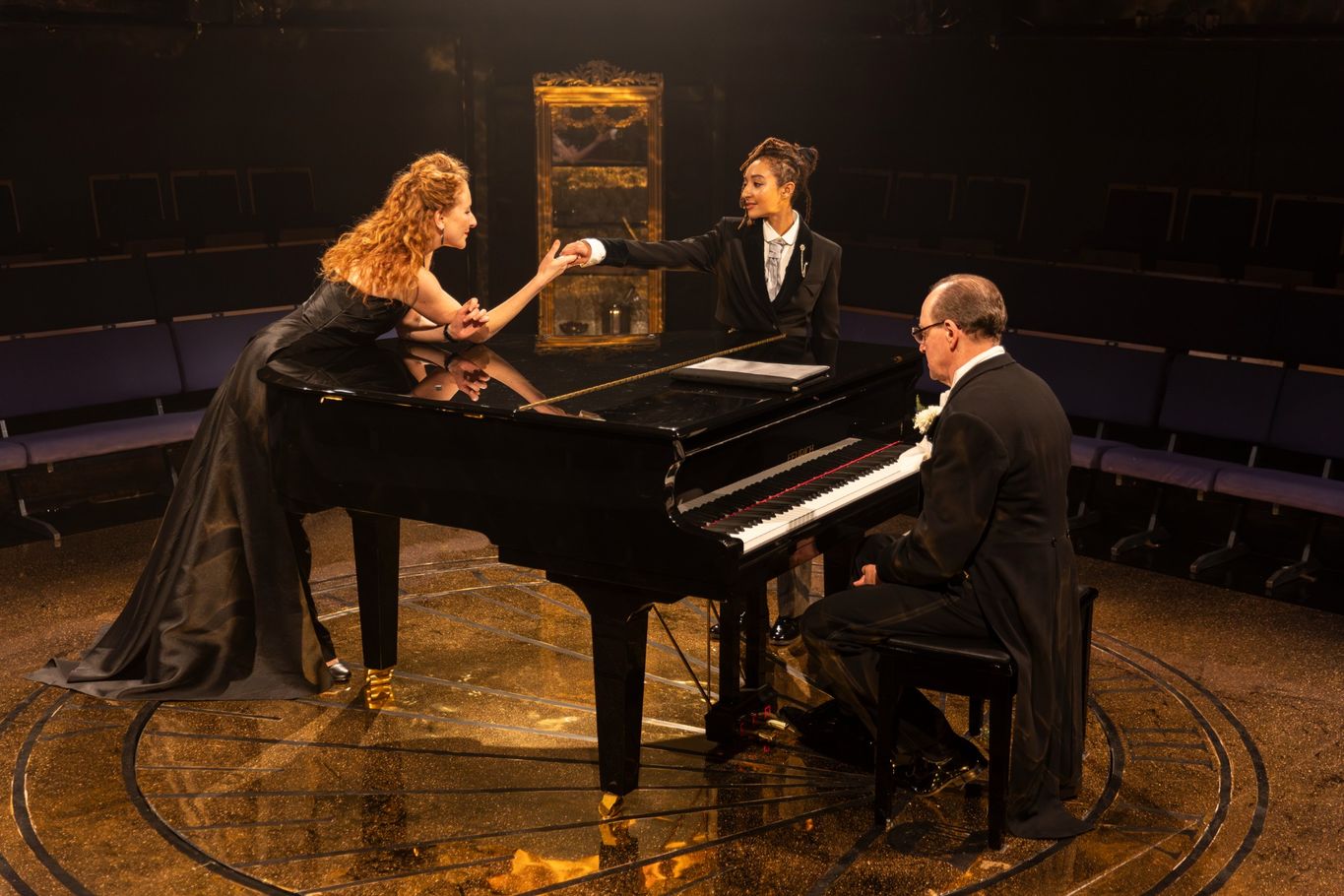 Set in the mid-1940s, the production featured an array of fashions, from white tie to dinner suits. The grand piano took centre stage and, despite its prominence, did not intrude on the action. Instead, Stefan Bednarczyk (Feste and Composer) used the piano and his music to complement and enhance the on-stage emotion. The piano itself sat on a revolve, moving so slowly it was almost imperceptible, which added to the fluidity of the staging.