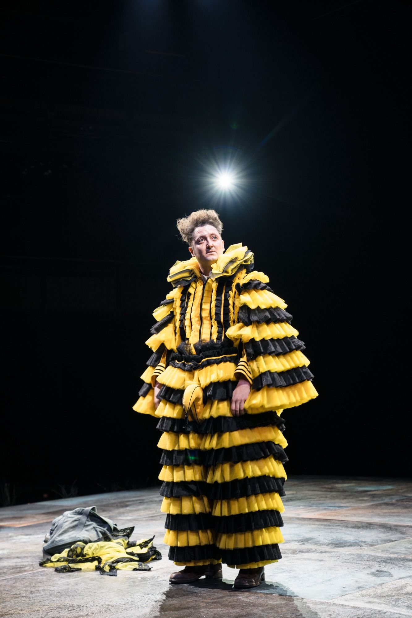 The stage at the Barbican is unlike other “normal” stages. Known for its brutalist architecture, side doors that shut at once and metal safety curtain, it is a demanding space. This might, however, be the right show for it. The set is simple; at most there is an impressive organ, which doubles as a forest for our pranksters, a fun and inventive choice. While the set design by James Cotterill was simple, it was also gothic and leaned into the humour and melodrama the characters face. Cotterill also designed costumes which did a lot of the heavy lifting to add laughs, from Malvolio's infamous yellow stockings to Michael Grady-Hall’s (Feste) fantastic yellow and black jester’s outfit. There were moments of Christmas, but it felt tasteful rather than a full on pantomime.