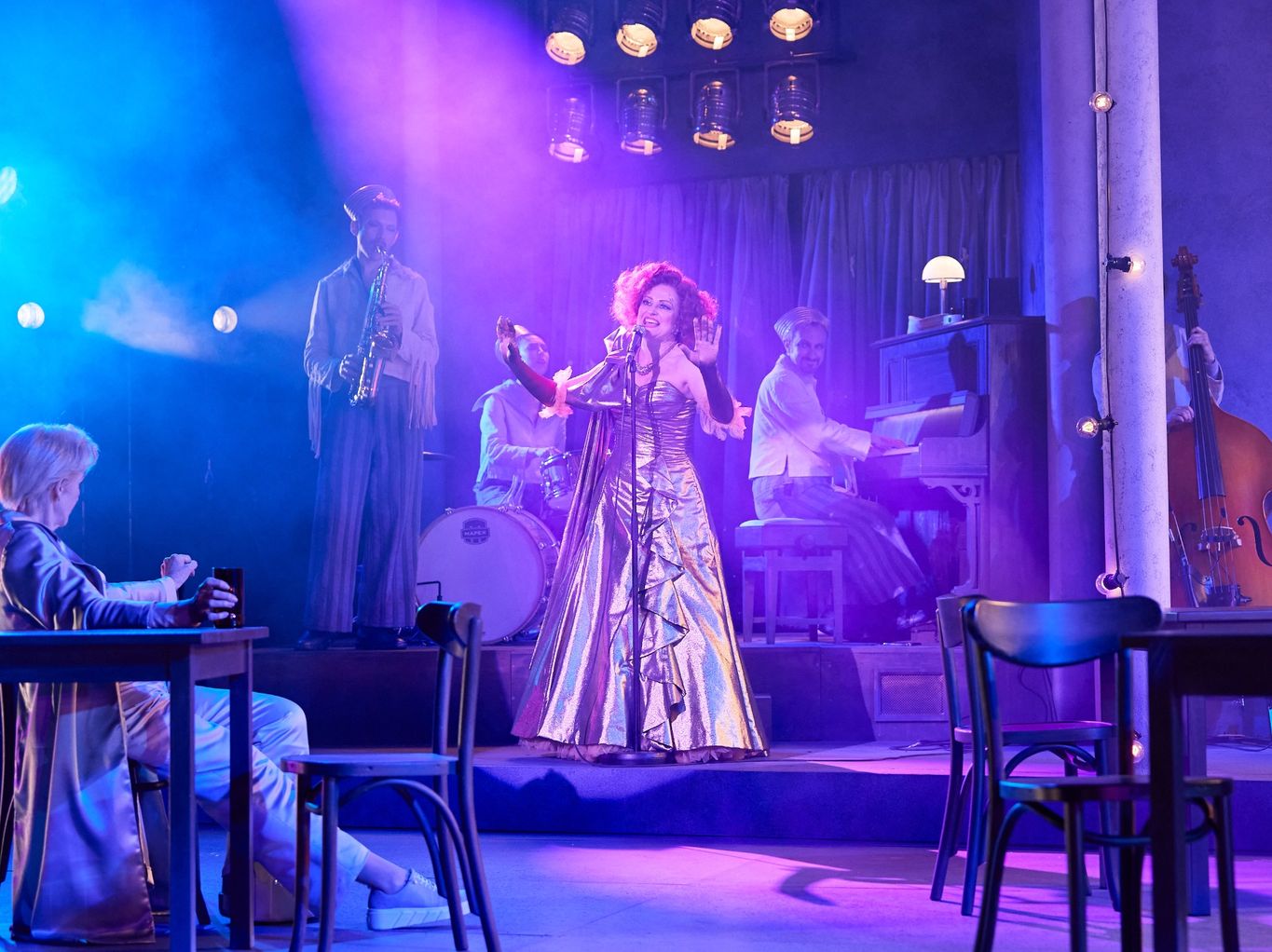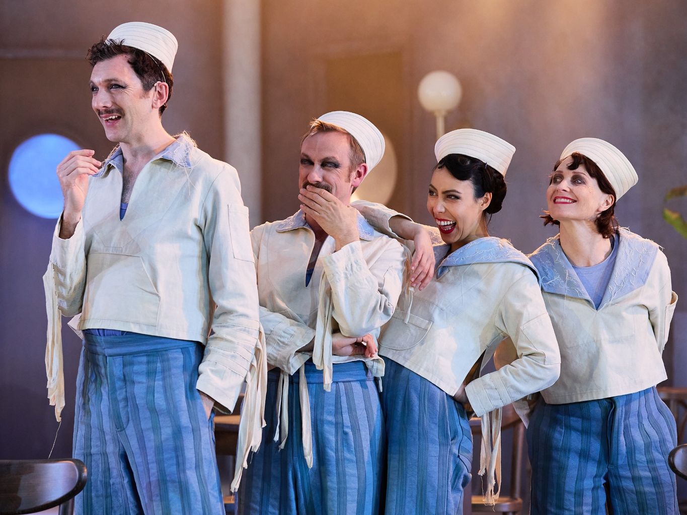 The set design by Basia Binkowska, along with costume design by Ryan Dawson Laight really emphasise the grandeur of the piece. Drawing on inspirations from the 1930-40’s, there is an air of sophistication until you delve below the surface. The set has been well thought out and is functional as well as beautiful to look at. Ryan previously designed costumes for last years La Cage Aux Folles and you can see a similar style in a lot of the costumes here too, touches of glitter and well-tailored suits all bring glamour to the play.