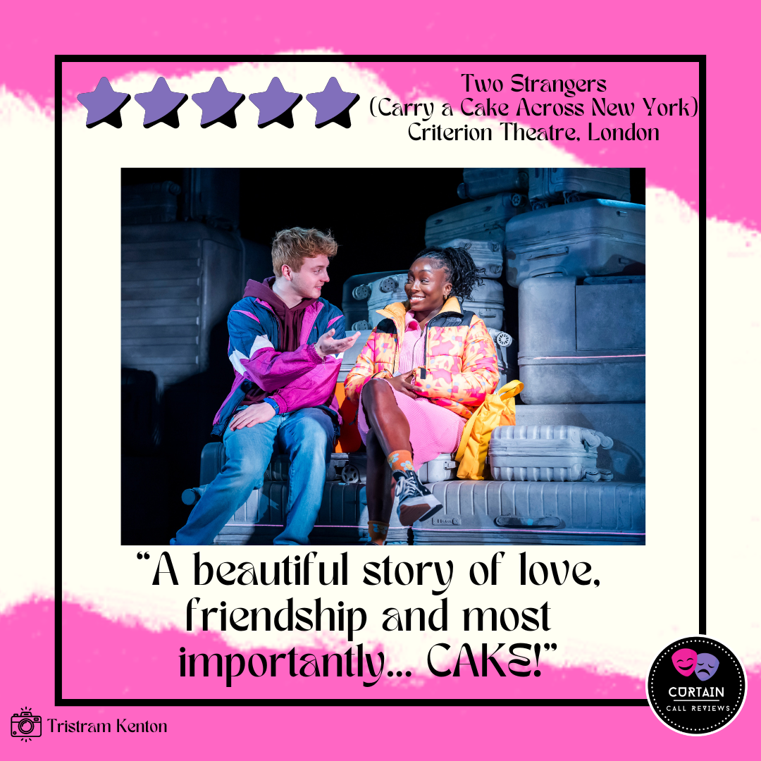 This show was reviewed on the 23rd April 2024 at The Criterion Theatre, London where it runs until the 14th July 2024. Tickets available here: Two Strangers (Carry a Cake Across New York) the Musical | Criterion Theatre London | Official UK Site (twostrangersthemusical.com)