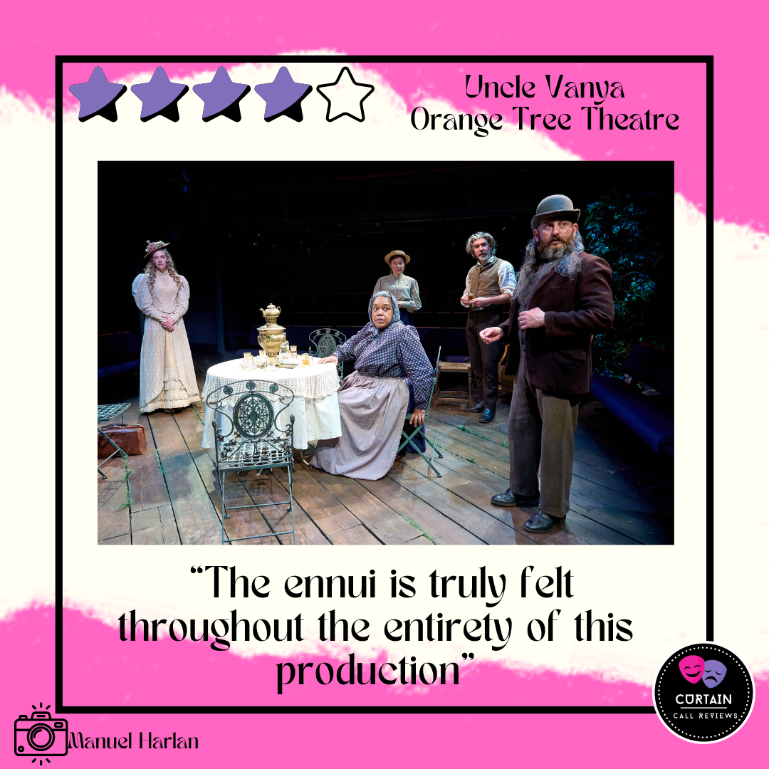 This show was reviewed on the 7th March 2024 at the Orange Tree Theatre, London where it runs until the 13th April 2024. Tickets available here: Uncle Vanya - Orange Tree Theatre