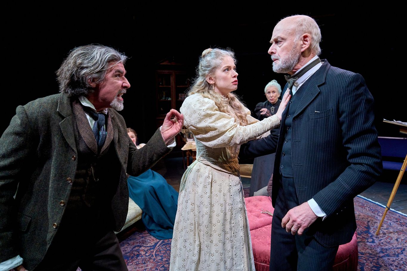 Nonetheless, director Sir Trevor Nunn makes such staging choices completely intentional. This growing frustration of being obscured from the action effectively feeds back into the mounting restlessness the audience senses in these characters.