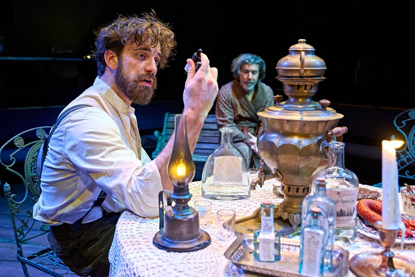 The intricacy in Elena’s hairstyling goes beyond portraying her as a beautiful woman. It is another hint at the bourgeoisie’s idleness, their lack of purpose and work providing them with so much time to dabble in the trivialities of activities such as preening. This is a marked contrast to the doctor Astrov (Andrew Richardson), a member of the working class who spends his free time focusing on ecological preservation, arguably a more worthwhile and noble pastime.