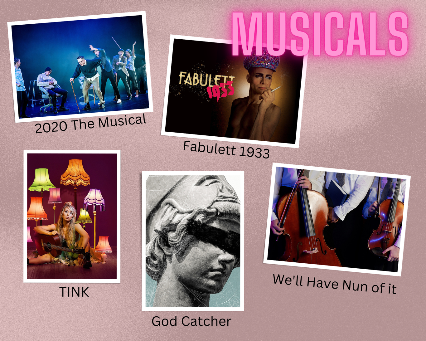 Debut show 2020 The Musical is a joyful new musical, celebrating human resilience in every form, depicting the true, uplifting stories of everyday heroes and turning the events of 2020 into a heart-warming party (and unlike Downing Street, everyone’s invited); God Catcher reimagines the story of a woman turned to a spider as punishment from the Ancient Greek Gods, exploring the legacies of truth and bravery through catchy tunes and heartfelt lyrics; tender musical Fabulett 1933, sees a liberal queer society in Berlin protest as the authorities close off every opportunity for freedom and expressionism; We’ll Have Nun Of It is a masterpiece, blending contemporary pop, soul and funk music into a unique new musical that navigates the angst and joy of Ireland in the sixties; and Tink is a nostalgic love-letter to our past selves through the eyes of a very familiar fairy.
