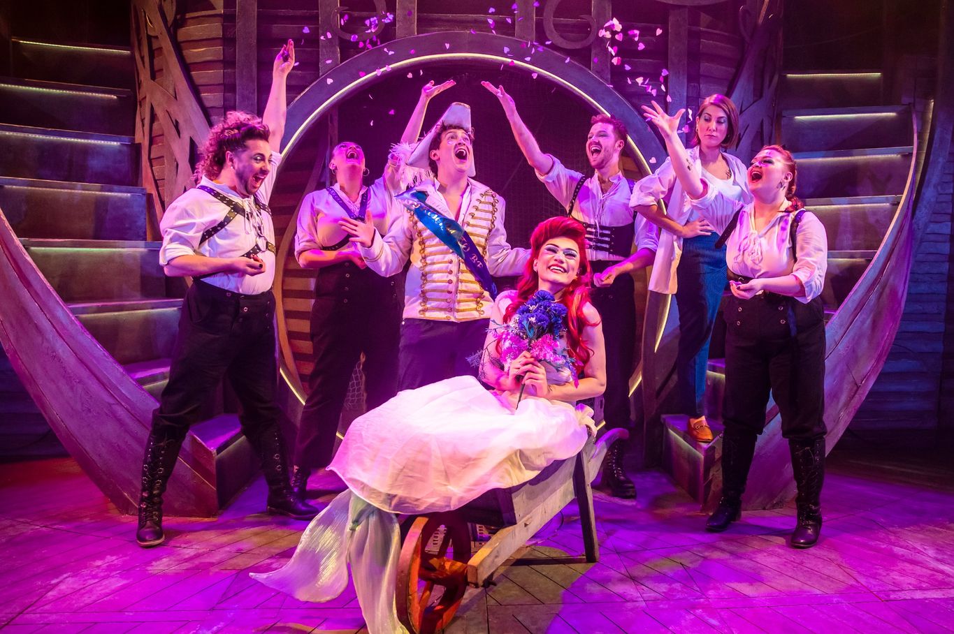 The cast were made up of nine people, all giving an abundance of electric energy and passion during each number. Shawna Hamic played the queen of the evening, sassy sea witch Ursula. You may recognise her from the hit Netflix series Orange is the New Black or even from her previous Broadway shows, however apparently she’s always wanted to perform in England so is thrilled to be part of this new production. Hamic gave us rich, powerful vocals and we were immediately at ease with this seasoned professional. There’s no doubt that her impressive resume is down to her outstanding characterisation and comic timing. Hamic’s narration was clear, charismatic and this icon was very ‘shore’ of herself for an ostracised octo-woman. There’s definitely big tentacle energy here.