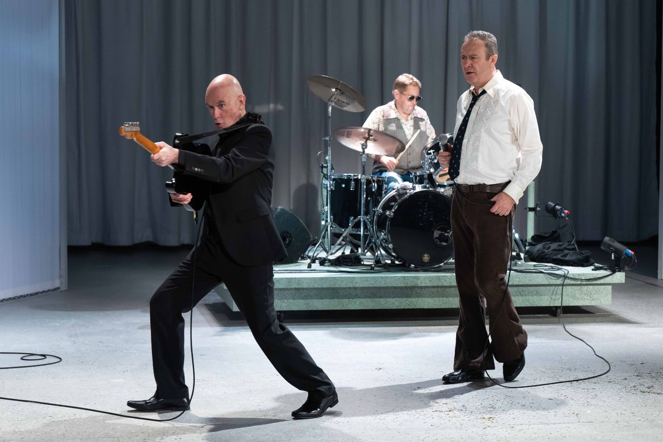 The set is simple, some rugs scattered as though carpeting a music studio, with the instruments always on stage, reminding us that rock ‘n’ roll is the bedrock of all their lives and the one thing they all have in common.